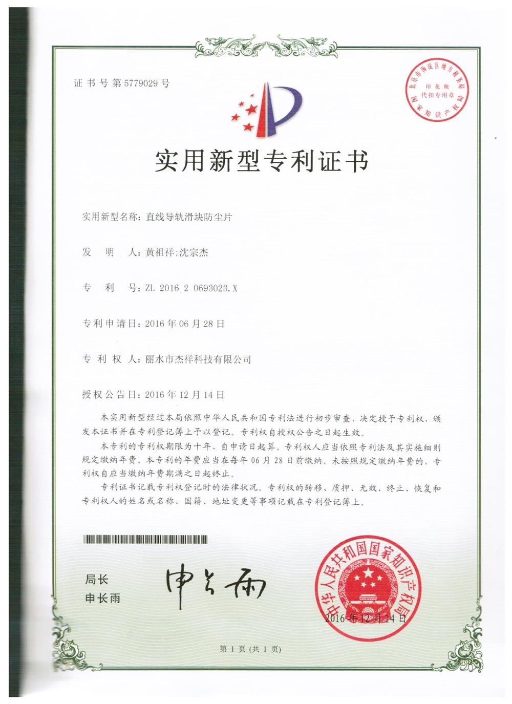 新產(chǎn)品鑒定證書—導(dǎo)軌GH30